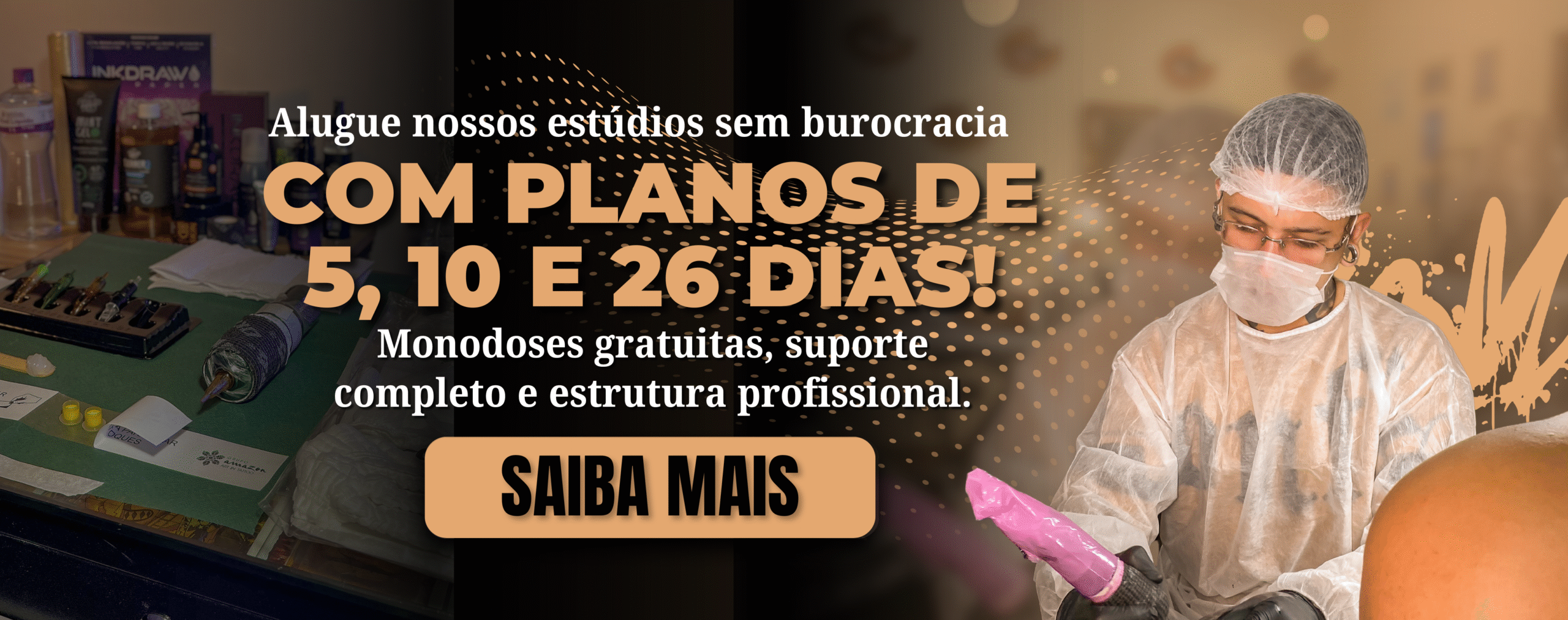Os Estúdios do Ateliê 0630 surgem como uma solução inteligente para profissionais que buscam flexibilidade, alto padrão e suporte completo, não apenas para tatuadores, mas também para quem atua em diversas áreas da estética, como piercing, micropigmentação, body art, massagem e outros procedimentos estéticos compatíveis com o espaço.