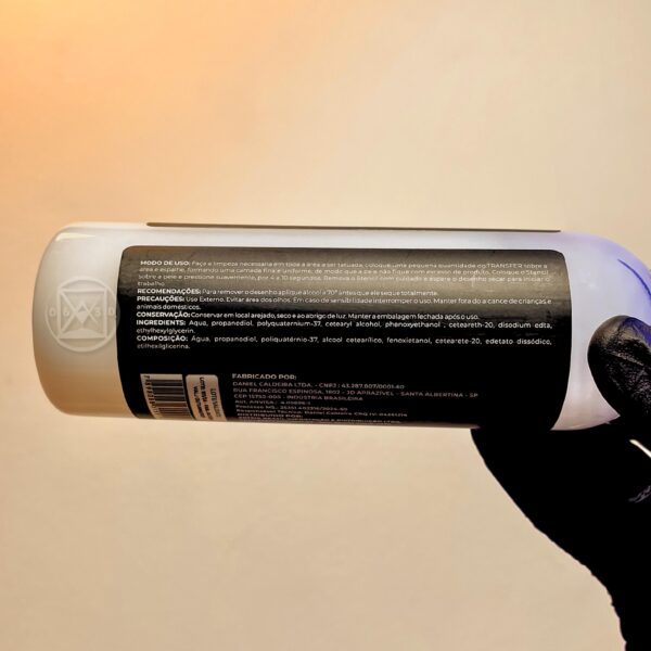 🔍 Características Principais: Fixação Extrema Mantém o decalque visível e estável mesmo em sessões longas. Fórmula Avançada Evita borrões, garantindo uma transferência uniforme e limpa. Aplicação Fácil Textura líquida (240ml) que facilita o uso, economiza tempo e produto. Segurança e Qualidade Feito com ingredientes premium, ideal para a pele, oferecendo conforto e segurança ao cliente.